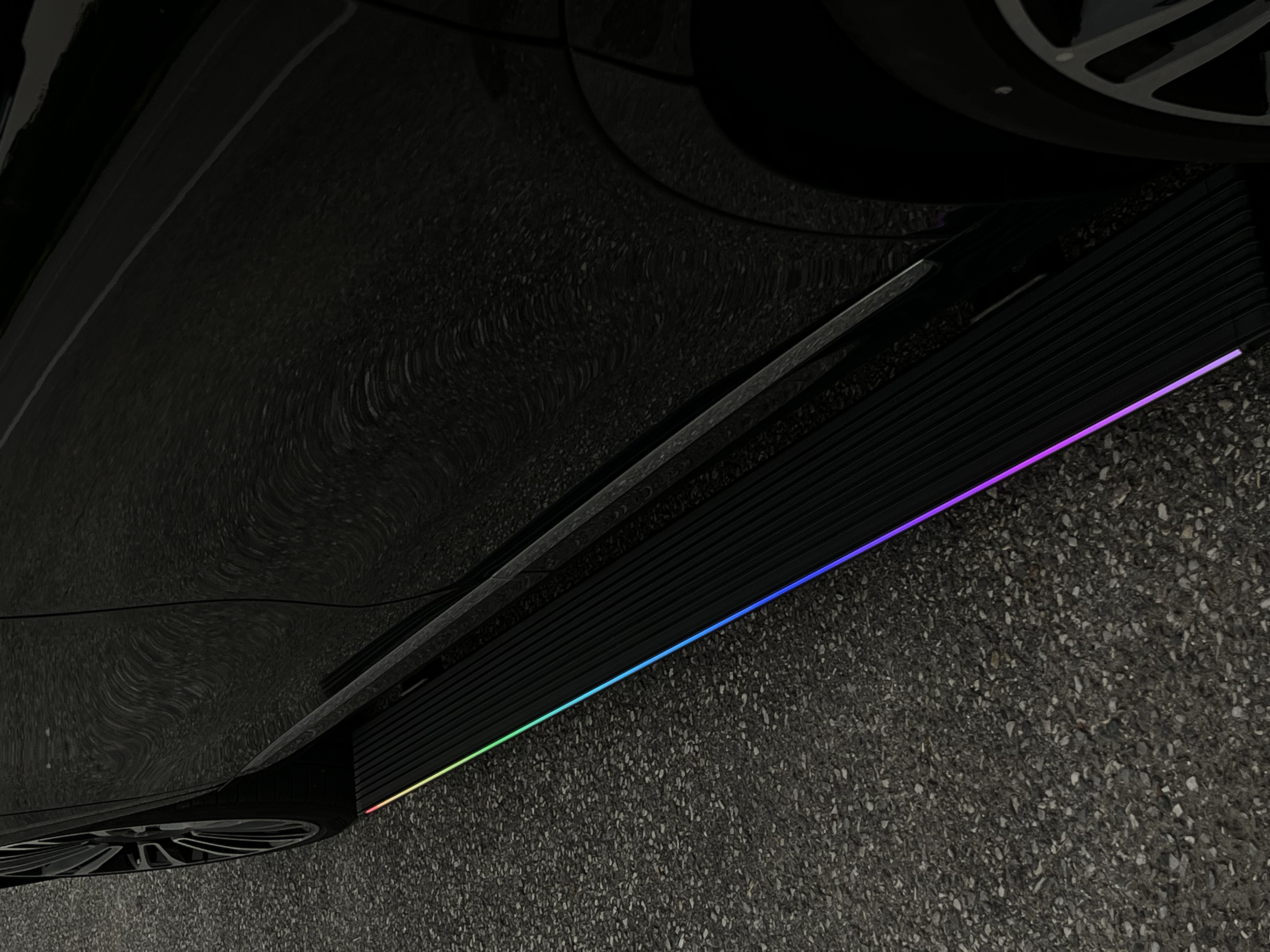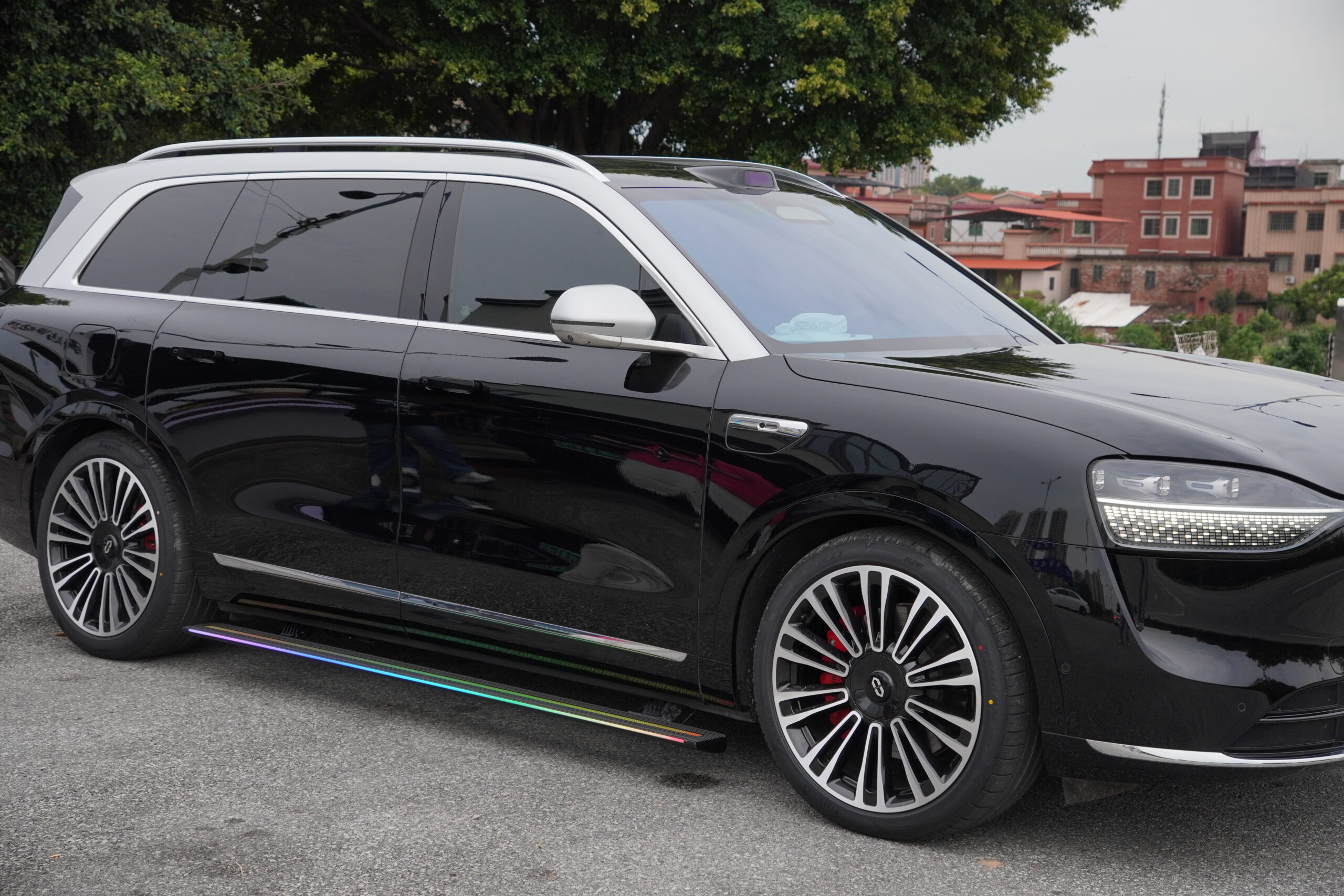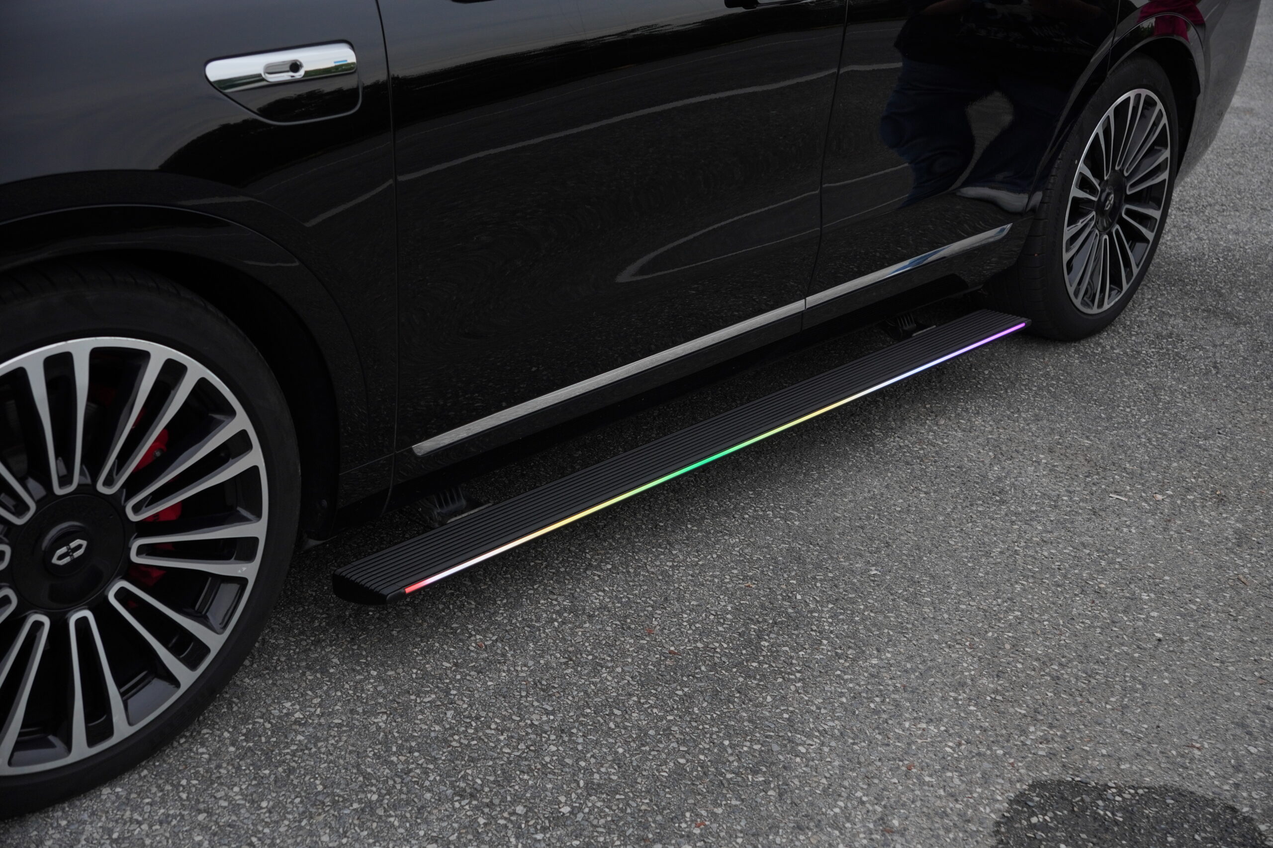 • Design highlights: The panel width is 12 cm, with a seven-color LED light strip embedded on the outside. It supports three lighting modes: standard, warning, and welcoming. The light is evenly distributed and creates a strong sense of ceremony when getting in and out of the vehicle at night.